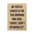 Kaart - My coffee looked at me this morning and said: "Sorry, I don't do miracles"