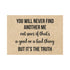 De kaart ‘You will never find another me Not sure if that’s a good or a bad thing But it’s the truth’ is een bruine ansichtkaart van eco vriendelijk kraft karton met zwarte quote. Aan de achterkant is ruimte om iets te schrijven en lijntjes voor de adresregels.